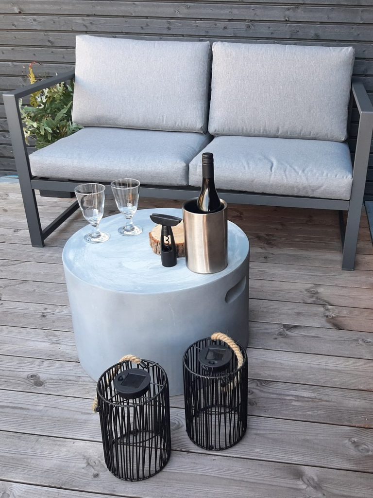 Aus der Cabin treten Sie direkt auf die großzügige Terrasse, zum Beispiel um Ihren Morgenkaffee zu genießen oder für einen Sundowner. Gemütliche Loungemöbel und Kuscheldecken für kühlere Stunden stehen zur Verfügung. Schauen Sie von hier ins Himmelsblau, den Wolken zu oder beobachten Sie die Perseiden und vergessen Sie das Wünschen nicht.